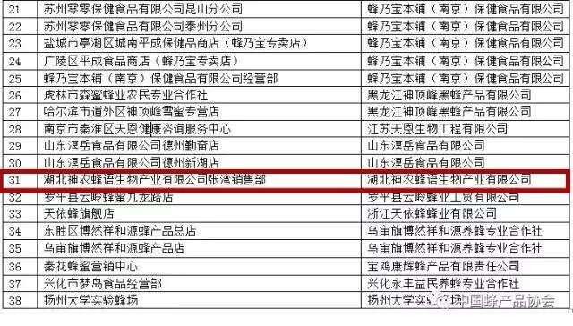 據中國蜂產品協會消息,38家蜂產品專賣店被評為2017年“中國蜂產品協會標準化經營示范專賣店”,神農蜂語張灣店入選。